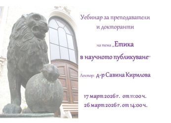 На 17 март 2026 г. (вторник) от 11:00 ч. и на 26 март 2026 г. (четвъртък) от 14:00 ч. ще се проведе уебинар на тема "Етика в научното публикуване". Уебинарът ще Ви запознае с основни принципи и правила...