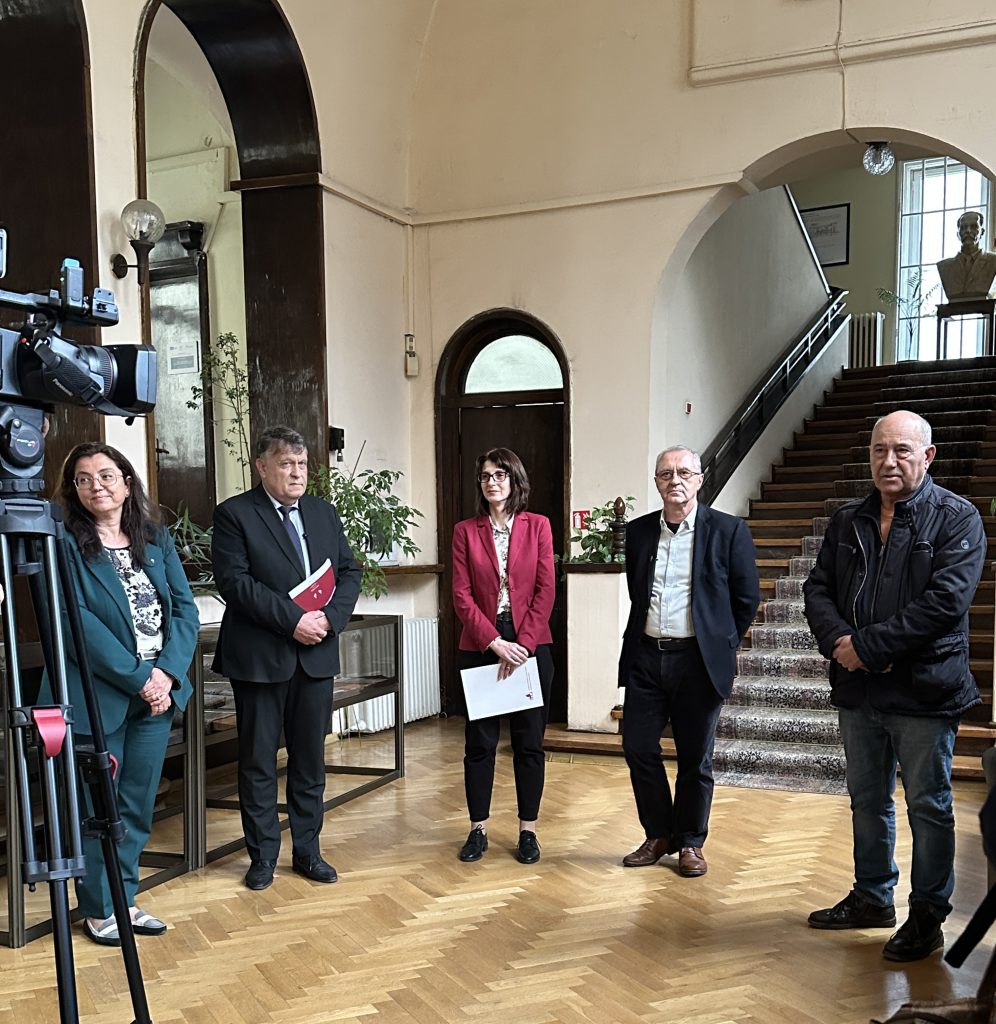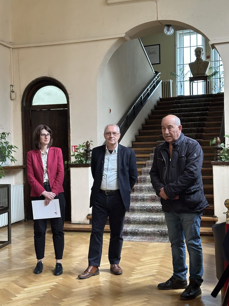 Директорът на Университетското издателство проф. Валери Стефанов благодари на Университетската библиотека за представянето на 40-годишнината на издателството чрез настоящата изложба и акцентира върху връзката между Университетската библиотека, печатницата и издателството – институции, които още от самото начало функционират в тясно взаимодействие и формират единна книжовна среда в Софийския университет.