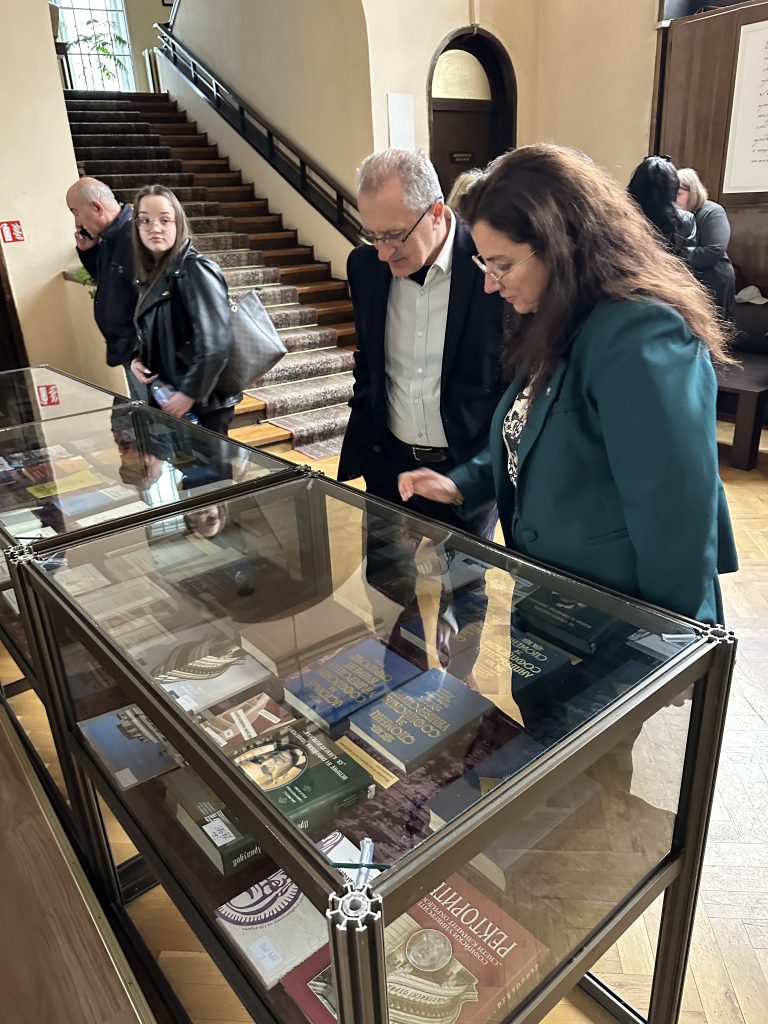 Доц. Биляна Яврукова приветства гостите и разказа за началото на университетското книгопечатане, свързано с историята и на Университетската библиотека. Проследявайки връзката между двете звена на университета, тя изтъкна, че изданията на Университетското издателство са едни от най-търсените заглавия в библиотеката, която е била и ще продължава да бъде техен дом и най-ревностен пазител. Директорът на библиотеката представи изложбата, акцентирайки на богатството на издаваните от Университетското издателство заглавия от всички научни области, като посочи последователността на подредените издания, отразяващи развитието на издателството и обогатяването на тематичния обхват по десетилетия.