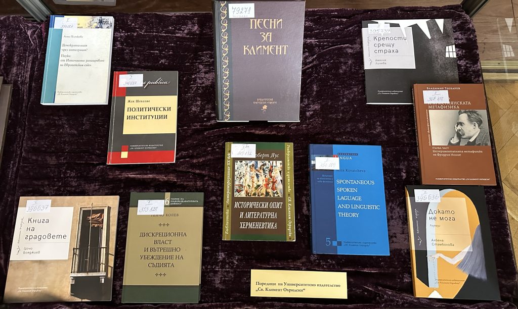 Изложбата „40 години Университетско издателство „Св. Климент Охридски“ може да бъде разгледана до 8 май 2026 г. в работното време на Централната университетска библиотека.