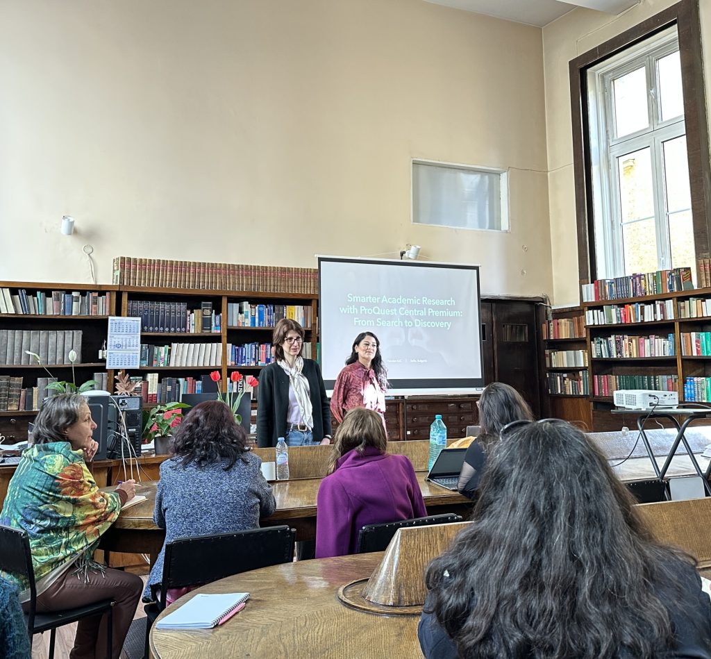 На 22.04.2026 г. представители на ProQuest проведоха в Централна университетска библиотека обучение за работа с платформата Proquest Central Premium, включена в националния лиценз на Министерство на образованието и науката.На него присъстваха преподаватели, докторанти, студенти и библиотекари от Софийския университет „Св. Климент Охридски“, както и библиотечни специалисти от други университетски библиотеки.